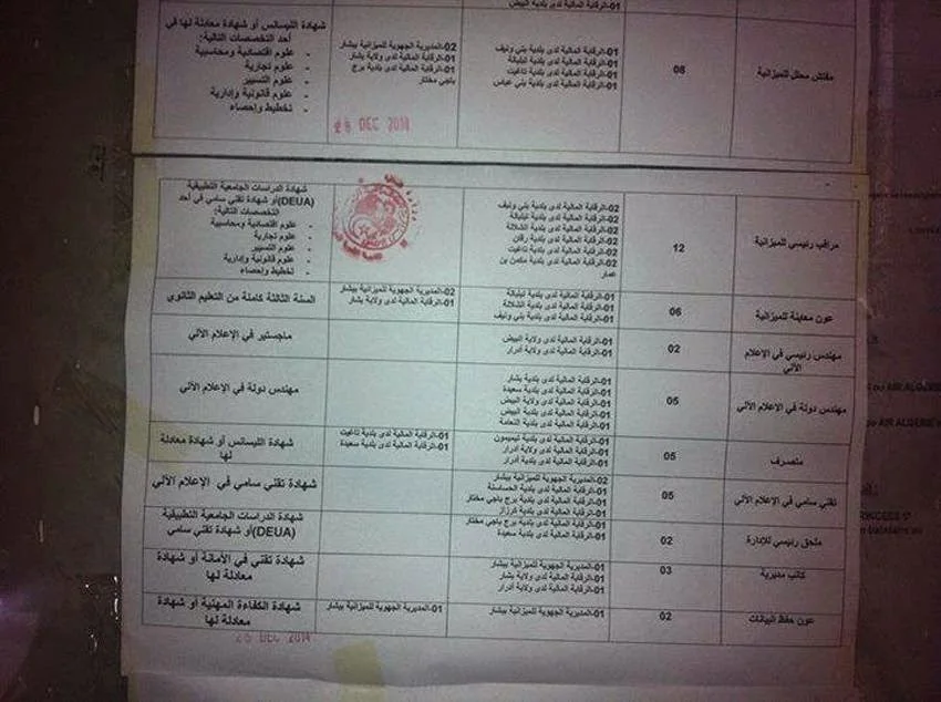 اعلان توظيف و عمل المديرية الجهوية للميزانية بشار + ادرار + سعيدة + النعامة + البيض 65 منصب 29 ديسمبر 2014